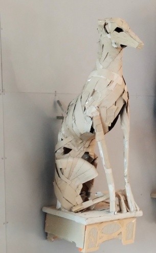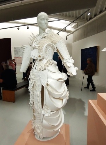 Op 23 oktober bezochten Aly, Hennie,  Mary, Geert en Hinnie het Coda Museum. Het was een regenachtige dag, omdat we met eigen vervoer gingen ontmoetten we elkaar in het museum en genoten eerst van een kopje koffie. Het eerste wat we zagen was een auto helemaal gemaakt van karton.  Als je denkt dat papier alleen belangrijk is voor verpakkingen en schrijven dan heb je het dus mis. We waren onder de indruk wat je er allemaal mee kunt doen.  Zelfs sieraden, de dieren waren prachtig. Het prikkeld je fantansie en creatieve geest. Naarmate we verder kwamen waren er abstracte figuren en futuristische  objecten.