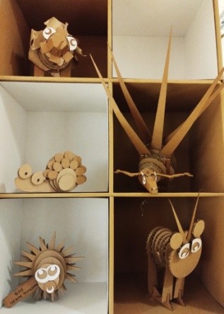 Het museum gebouw was deel van een groot comlex, waarin ook het gemeentehuis en bibliotheek zijn ondergebracht. In de bibliotheek is een afdeling waar kinderen allerlei vaardigheden kunnen leren. Voor hun een mogelijkheidom lasertechniek te leren en alles van papier. Hier enkele exemplaren van de kinderen.